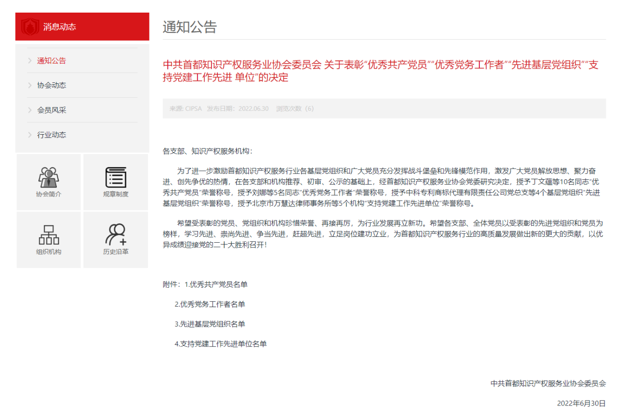 6月30日,中共首都知識產(chǎn)權(quán)服務(wù)業(yè)協(xié)會委員會下發(fā)表彰決定,授予北京三聚陽光知識產(chǎn)權(quán)代理有限公司黨支部“先進基層黨組織”榮譽稱號,同時授予北京三聚陽光知識產(chǎn)權(quán)服務(wù)集團咨詢業(yè)務(wù)總監(jiān)羅嘯“優(yōu)秀共產(chǎn)黨員”榮譽稱號。