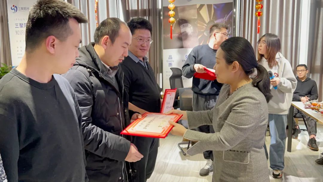 李敏總強(qiáng)調(diào),2022年,對(duì)太原分公司是嶄新的一年,也是開(kāi)拓創(chuàng)新、奮勇前進(jìn)的一年,太原分公司全體成員要堅(jiān)定扛起責(zé)任,保持工作的連續(xù)性和穩(wěn)定性,強(qiáng)化舉措的針對(duì)性和實(shí)效性,持之以恒做好案件撰寫(xiě),流程遞交、客戶服務(wù)等工作,共同推動(dòng)各項(xiàng)工作落地見(jiàn)效。要全面落實(shí)人才優(yōu)先戰(zhàn)略,加大人才培養(yǎng)和招聘力度,重點(diǎn)加強(qiáng)骨干管理人才培養(yǎng)和專利代理團(tuán)隊(duì)建設(shè),為繼續(xù)快速發(fā)展夯實(shí)人才基礎(chǔ);要落實(shí)大客戶戰(zhàn)略,加強(qiáng)大客戶開(kāi)發(fā)力度,做好大客戶服務(wù)和后續(xù)維護(hù)工作,著力發(fā)掘本地高價(jià)值專利申請(qǐng)業(yè)務(wù)、高端知識(shí)產(chǎn)權(quán)咨詢類業(yè)務(wù)、專利訴訟業(yè)務(wù),不斷增強(qiáng)三聚陽(yáng)光在山西的知名度和影響力;要落實(shí)多元化戰(zhàn)略,重點(diǎn)加強(qiáng)高價(jià)值專利布局和撰寫(xiě)、知識(shí)產(chǎn)權(quán)民事訴訟、商標(biāo)訴訟等方面的服務(wù)能力,重點(diǎn)打磨并推廣企業(yè)知識(shí)產(chǎn)權(quán)盡調(diào)及IPO上市知識(shí)產(chǎn)權(quán)輔導(dǎo)業(yè)務(wù)、耶知存證業(yè)務(wù)等新型服務(wù)產(chǎn)品;在集團(tuán)公司總領(lǐng)全局中嘗試集中培訓(xùn)模式和課程設(shè)置,不斷成型完整的服務(wù)團(tuán)隊(duì)格局;要落實(shí)信息化智能化戰(zhàn)略,推進(jìn)信息化建設(shè),打通客戶管理系統(tǒng)、案件管理系統(tǒng)、財(cái)務(wù)管理系統(tǒng)等內(nèi)部核心管理系統(tǒng),建設(shè)更加智能化、電子化的三聚陽(yáng)光;要全面落實(shí)合規(guī)管理,在公司做大做強(qiáng)的同時(shí),加強(qiáng)風(fēng)控和分支機(jī)構(gòu)建設(shè)管理,降低經(jīng)營(yíng)風(fēng)險(xiǎn),確保公司健康發(fā)展。最后,李敏總代表集團(tuán)公司高管層向奮戰(zhàn)在各個(gè)崗位的員工拜年,祝福大家及家人春節(jié)快樂(lè),闔家幸福,萬(wàn)事如意。