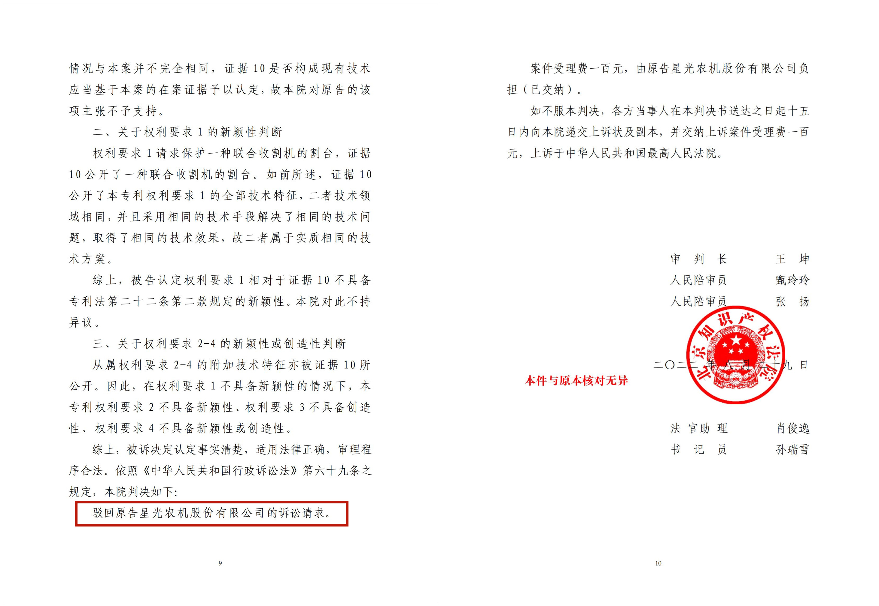 近日,由三聚陽光和北京易聚律師事務(wù)所聯(lián)合代理農(nóng)機(jī)企業(yè)與星光農(nóng)機(jī)股份有限公司的專利無效行政訴訟勝利結(jié)案。北京知識產(chǎn)權(quán)法院作出(2022)京73行初5733號行政判決,駁回原告星光農(nóng)機(jī)對于第53015號無效決定的訴訟請求。