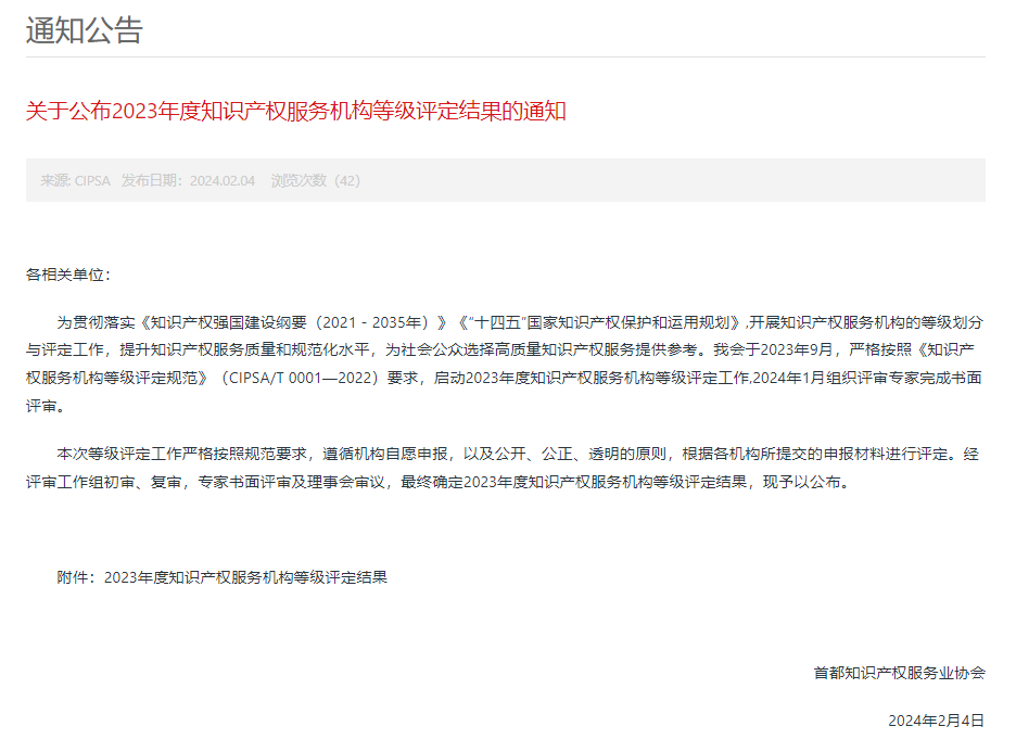 近日,首都知識產(chǎn)權(quán)服務(wù)業(yè)協(xié)會公布了2023年度知識產(chǎn)權(quán)服務(wù)機構(gòu)等級評定結(jié)果,三聚陽光以卓越的服務(wù)質(zhì)量和行業(yè)影響力,榮獲最高榮譽——五星級知識產(chǎn)權(quán)服務(wù)機構(gòu)評定。這一殊榮不僅是對三聚陽光團隊專業(yè)能力的認可,也是對我司在知識產(chǎn)權(quán)服務(wù)領(lǐng)域持續(xù)創(chuàng)新和貢獻的肯定。