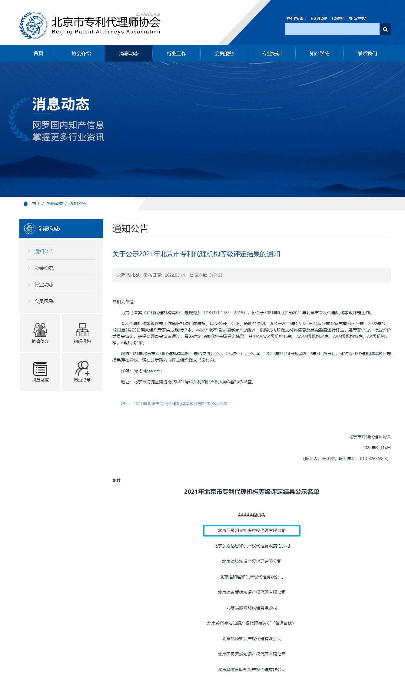 繼2018年被評(píng)為“北京市AAAAA級(jí)專(zhuān)利代理機(jī)構(gòu)”后,近日,北京三聚陽(yáng)光知識(shí)產(chǎn)權(quán)代理有限公司再次獲評(píng)2021年“北京市AAAAA級(jí)專(zhuān)利代理機(jī)構(gòu)”。