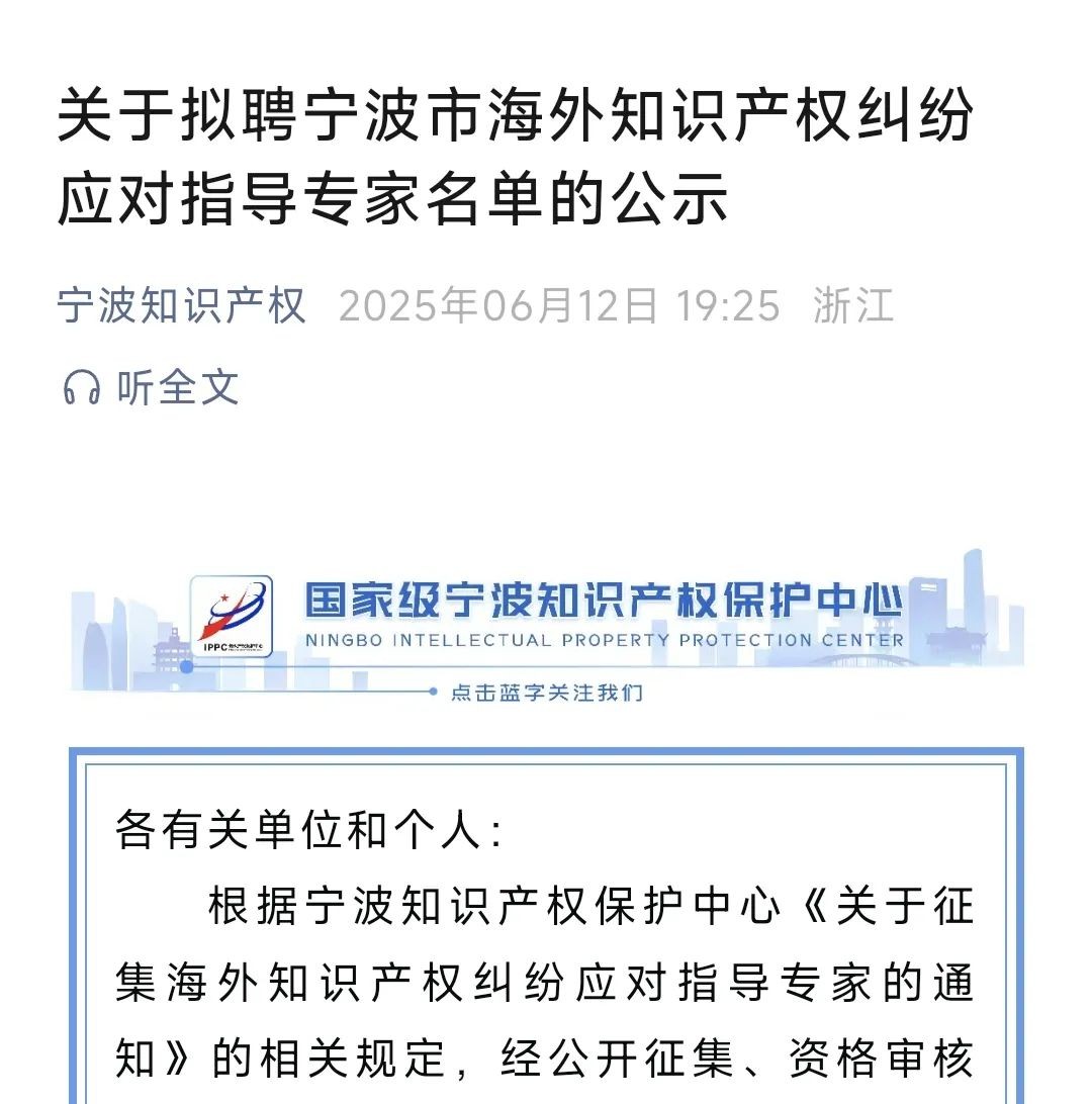 寧波作為中國(guó)制造業(yè)重鎮(zhèn)與外貿(mào)出口大市,企業(yè)頻繁面對(duì)國(guó)際市場(chǎng)中的知識(shí)產(chǎn)權(quán)糾紛,迫切需要專業(yè)指導(dǎo)與服務(wù)。此次專家聘任工作旨在幫助當(dāng)?shù)仄髽I(yè)有效預(yù)防并積極應(yīng)對(duì)海外知識(shí)產(chǎn)權(quán)風(fēng)險(xiǎn),保障國(guó)際市場(chǎng)布局安全。