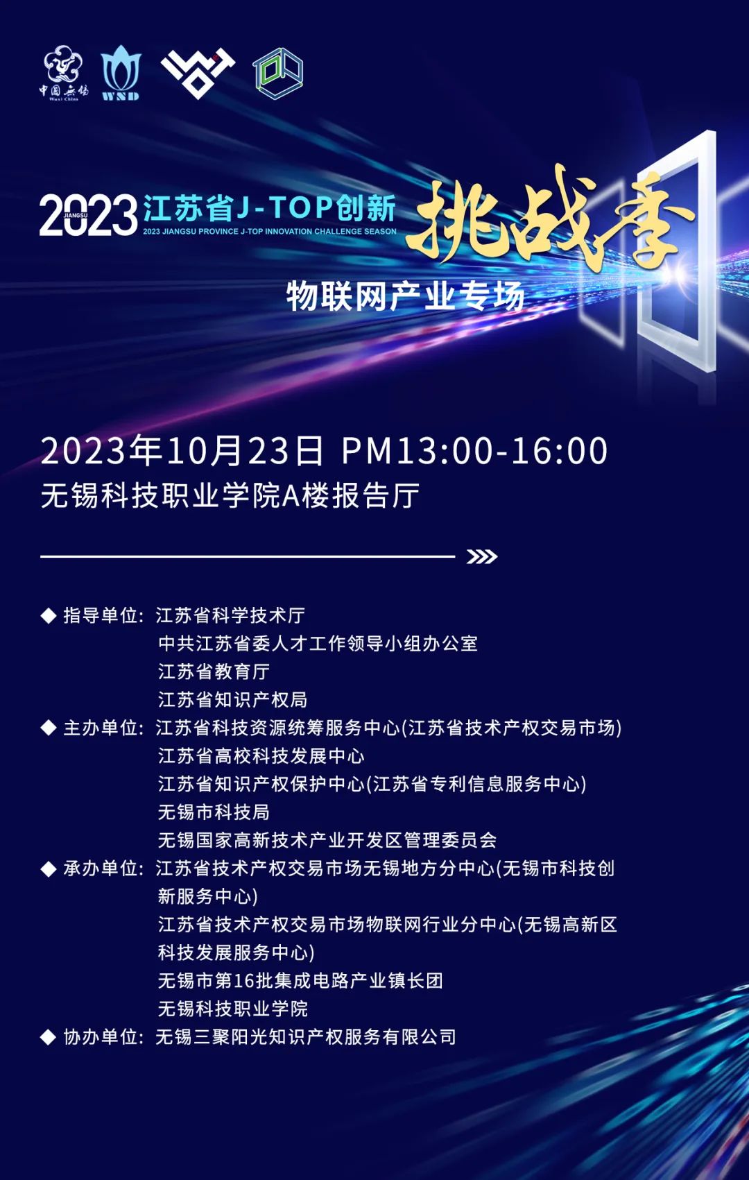 10月23日,為進(jìn)一步完善江蘇省技術(shù)轉(zhuǎn)移生態(tài)體系,充分發(fā)揮省技術(shù)產(chǎn)權(quán)交易市場(chǎng)作用,持續(xù)營造更加良好技術(shù)轉(zhuǎn)移氛圍,加快無錫市物聯(lián)網(wǎng)產(chǎn)業(yè)發(fā)展,2023年江蘇省J-TOP創(chuàng)新挑戰(zhàn)季物聯(lián)網(wǎng)產(chǎn)業(yè)專場(chǎng)技術(shù)轉(zhuǎn)移品牌活動(dòng)在無錫高新區(qū)成功舉辦,本次活動(dòng)由無錫三聚陽光知識(shí)產(chǎn)權(quán)服務(wù)有限公司協(xié)辦。?